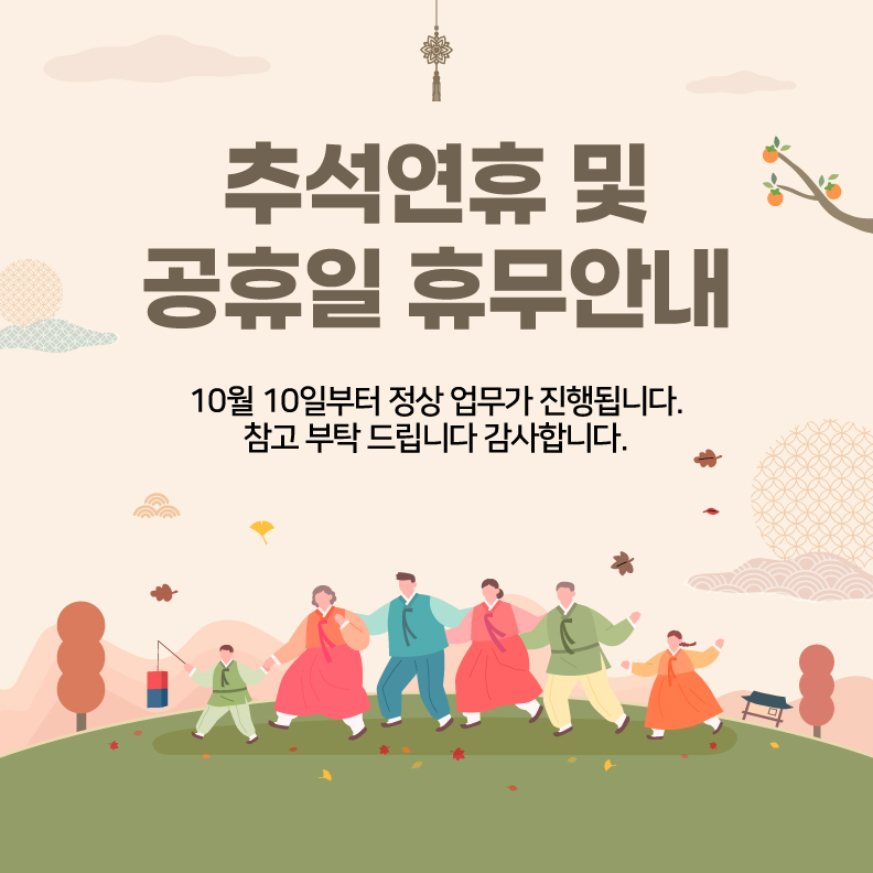 2025³â 10¿ù 6ÀÏ(¿ù) ~ 10¿ù 8ÀÏ(¼ö) : Ãß¼® ¿¬ÈÞ (3Àϰ£)